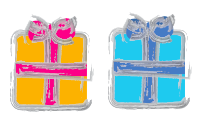 I then experimented with a few different colours and thought about having two different presents in the design so one targeted the male audience and one the female audience. I've gone for pretty bold colours as i'd like the design to stand out too.